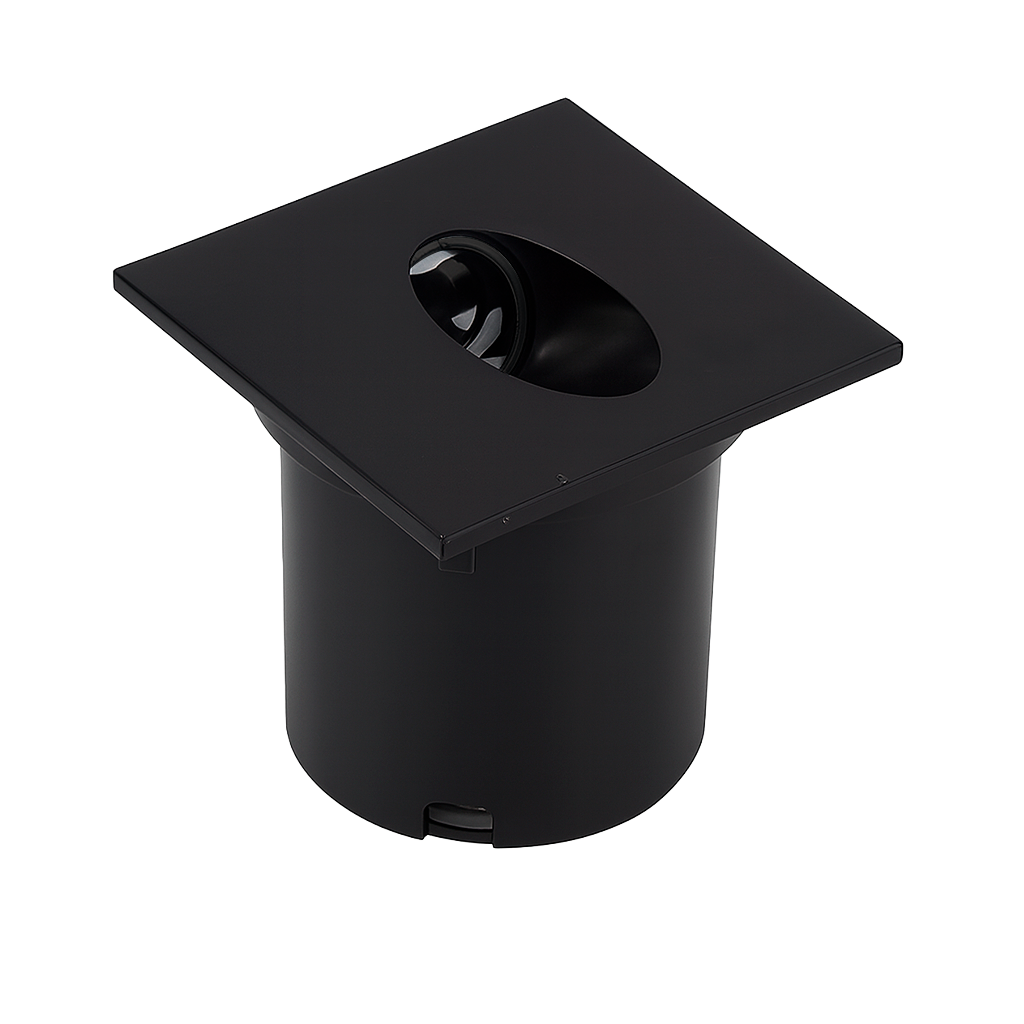 Spot embutido com corpo cilíndrico e frente quadrada, desenvolvido para iluminação direcionada em áreas externas ou internas. Foco interno recuado para reduzir ofuscamento e excelente resistência, sendo ideal para compor caminhos, jardins, fachadas e áreas de circulação com iluminação elegante e funcional.